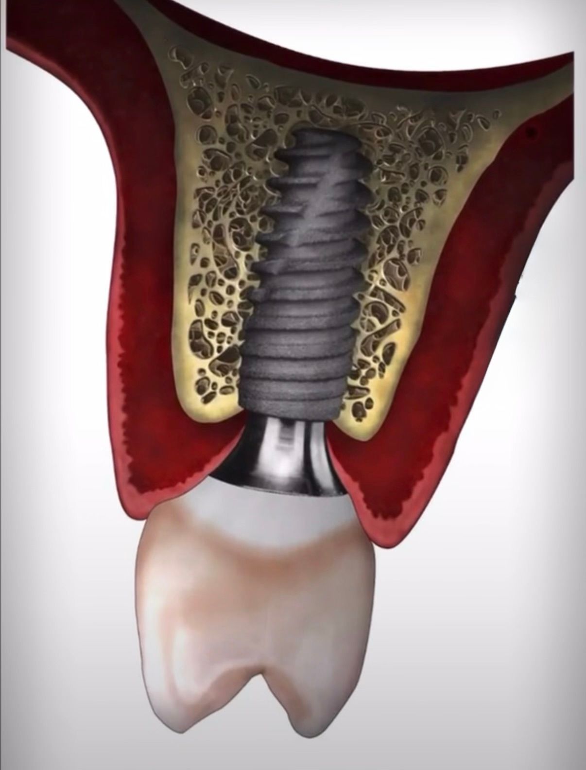 Un impianto dentale è una radice artificiale in titanio che viene inserita nell’osso con un piccolo intervento chirurgico.